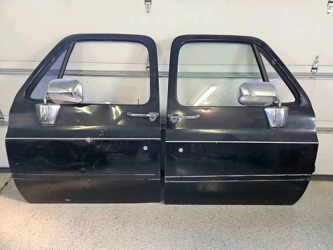 pair of doors from a 1973-1987 Chevrolet C/K series “Square Body” pickup truck. These trucks are known for their boxy design and durability.